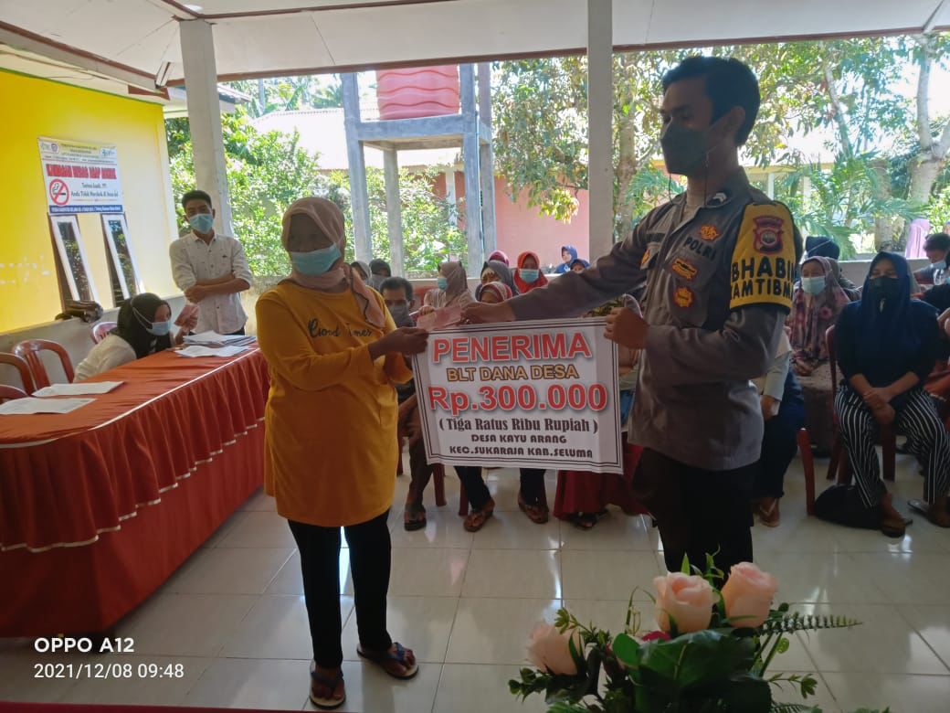 Jumlah penerima bantuan BLT-DD bulan Desember berjumlah 95 KPM,Kepala Desa Kayu Arang Bapak Saidina Aksa menyampaikan juga dalam sambutan nya mengharapkan bantuan ini dapat memperingan beban ekonomi warga akibat terdampak pandemi covid-19.